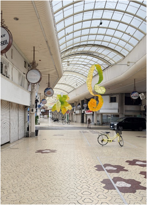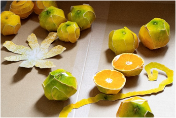 みかんの皮が商店街をジャックし、市民の手によって増殖していく !みかんという立体を平面にして、再び立体に戻す行為を「新大陸」に見立てたユニークなアート制作を体験。