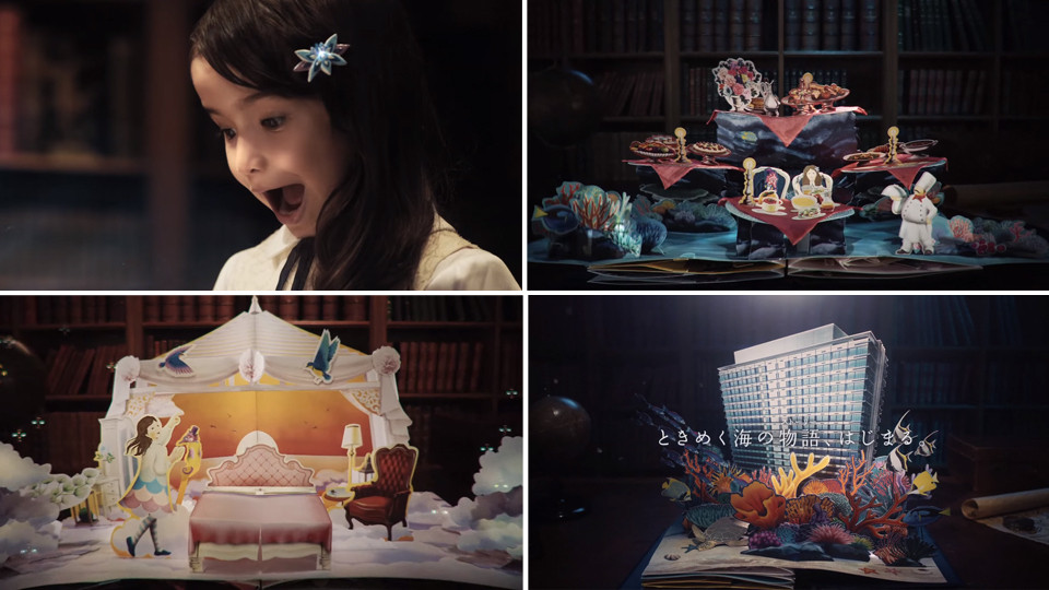 「東京ベイ東急ホテル」は各フロアに異なるデザインが施され、非日常が満喫できる“ときめく海のホテル”です。プロモーションでは、実際のホテルをモチーフとした美しい仕掛け絵本を制作。そこに描かれる少女の冒険を通して、ホテルのデザインコンセプト「Collection of Sea『空と海を感じるホテル』」やファンタジーの世界観をよりドラマチックに伝えます。