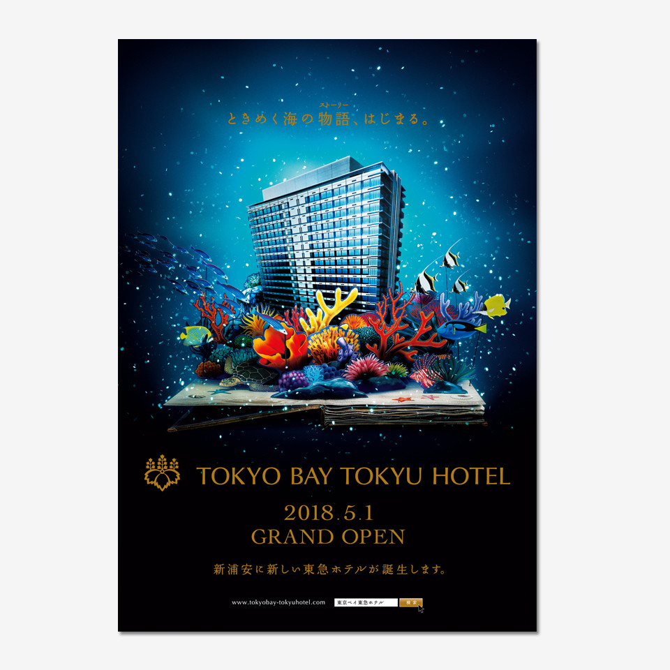 海を一望するベイサイドに立地する「東京ベイ東急ホテル」。オープニング告知用のプロモ―ションムービー、グラフィックをアマナが制作しました。